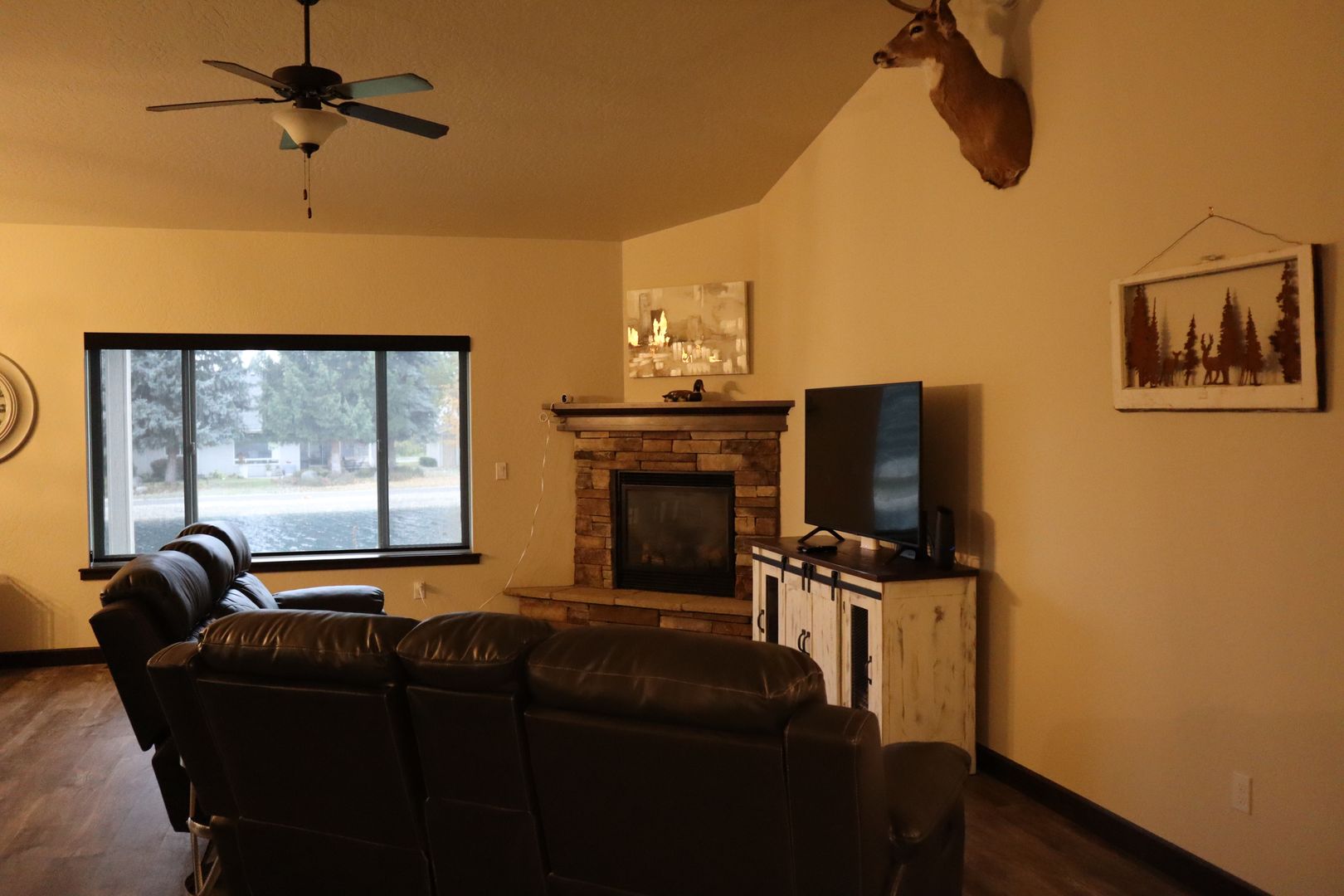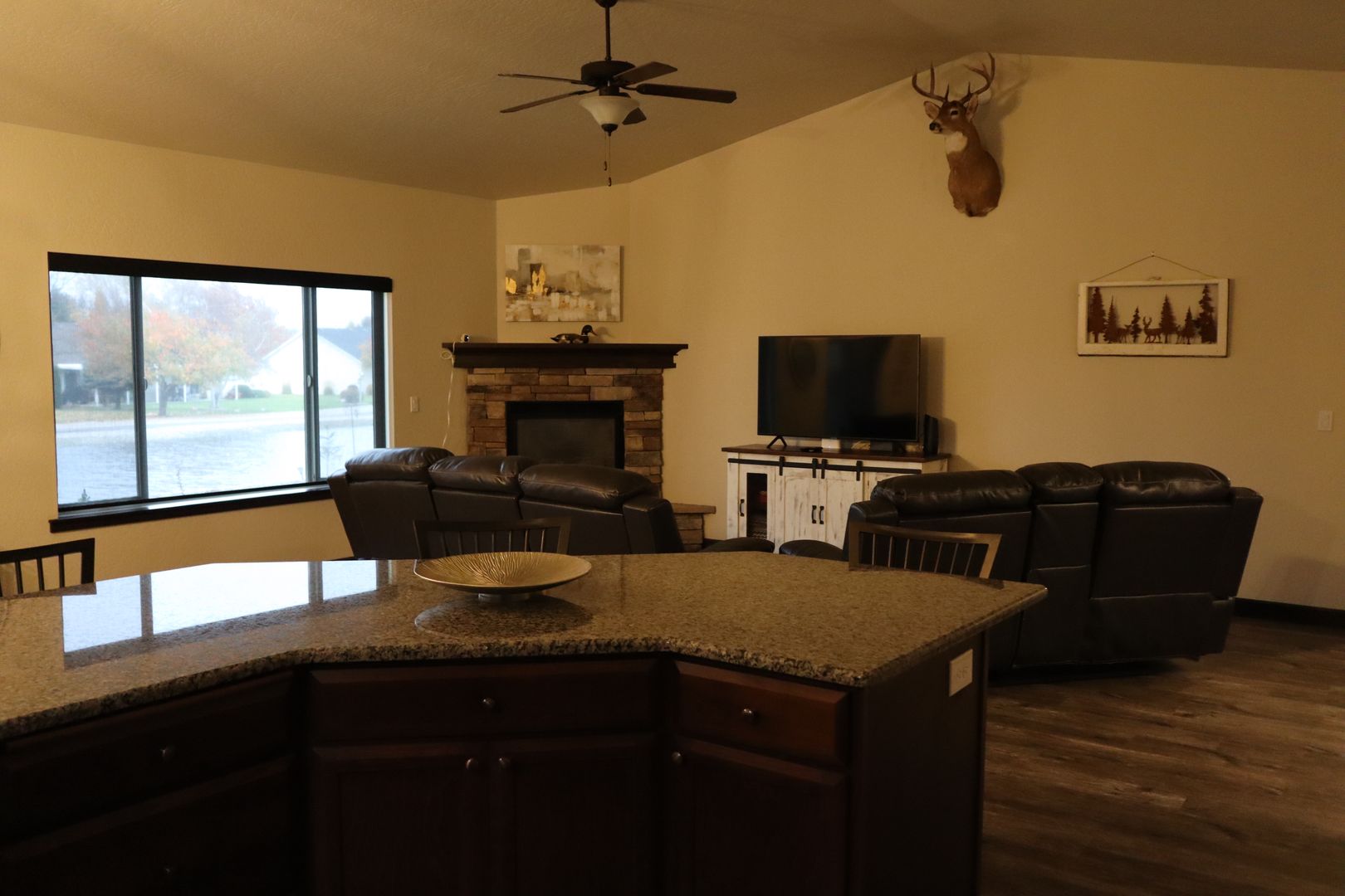 This Newer Fully Furnished or option of non furnished 3 bed, 2 bath home is tastefully decorated throughout. Nice, covered patio in the backyard which opens up to the Prairie Falls Golf Course, with a view of the spectacular water feature, fountains and ducks. Home is situated on the 14th T. Marble counter tops, LVP flooring in living area with carpeted bedrooms, gas fireplace, gas forced air heat, central air conditioning, 2 car garage, fully landscaped, sprinkler system, convenient location with easy commute to Spokane or Downtown CDA, 1 year lease. Live the Prairie Falls Golf Course lifestyle. Club house includes restaurant, spa & hotel, virtual golf and more. https://www.prairiefallsgolfclub.com